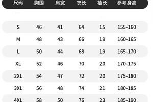 5. 参赛服尺码表如下,现场不提供更换尺码;
