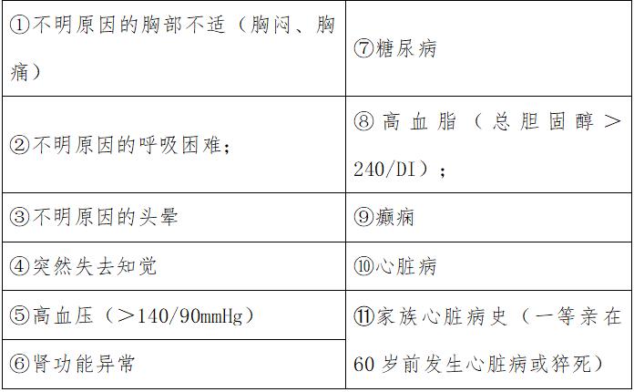 12.有以下疾病状况,属于猝死高危人群,请咨询医师的判断,请勿勉强: