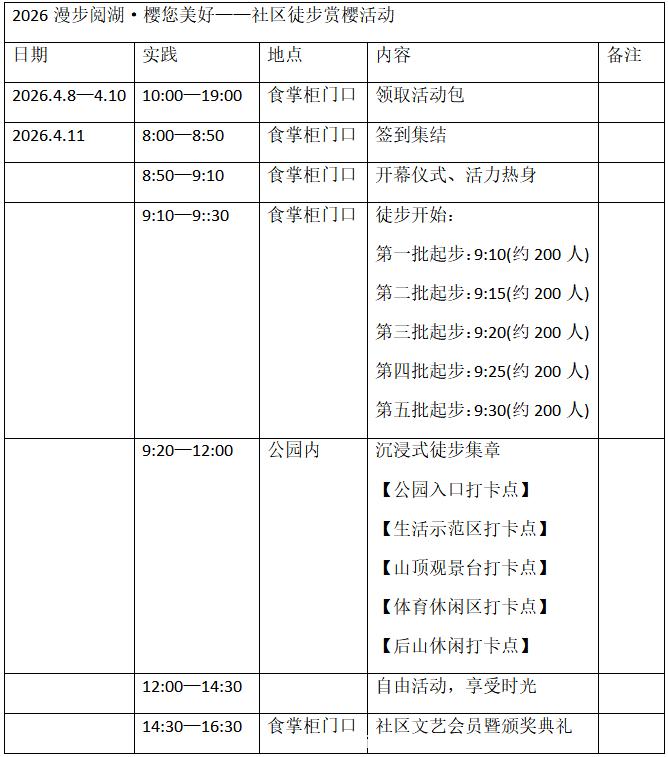 2026漫步阅湖·樱您美好——社区徒步赏樱活动规程