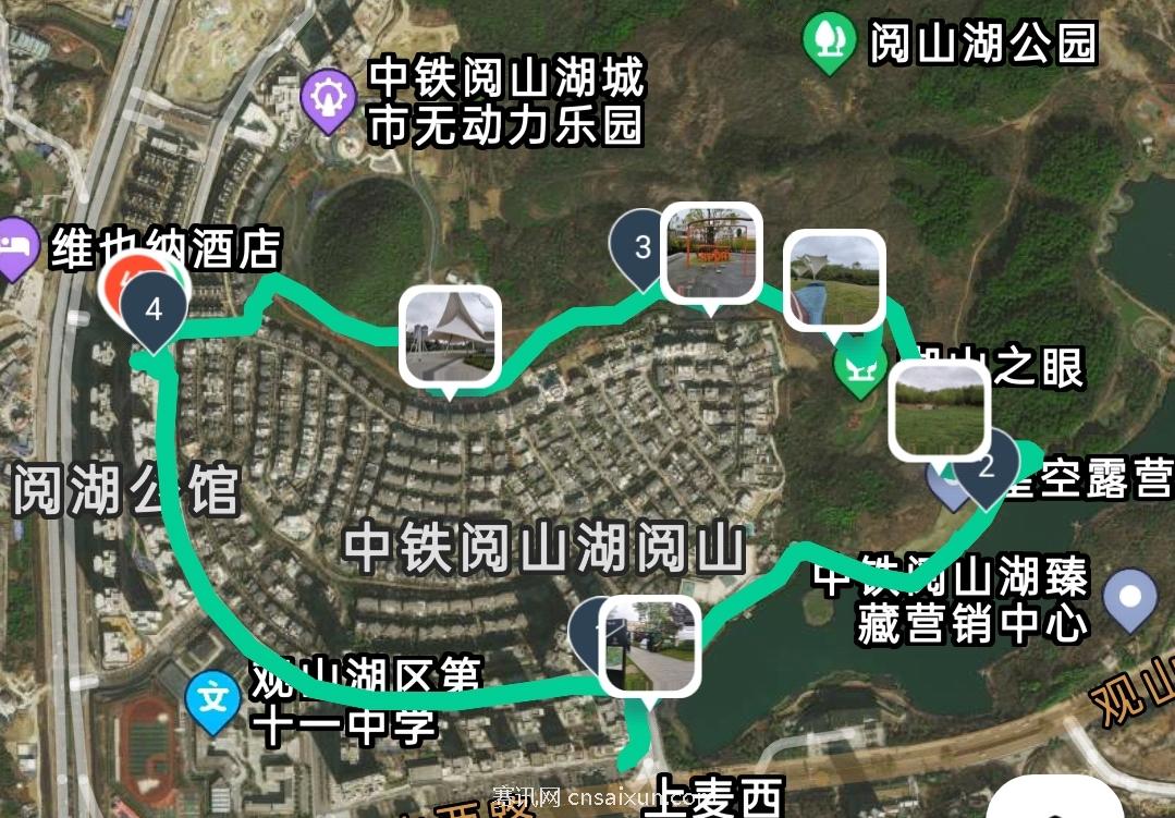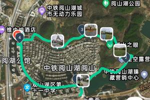 线路经过:公园入口-生活示范区-山顶观景台-体育休闲区-后山休闲区-(终点),全程5.20公里。