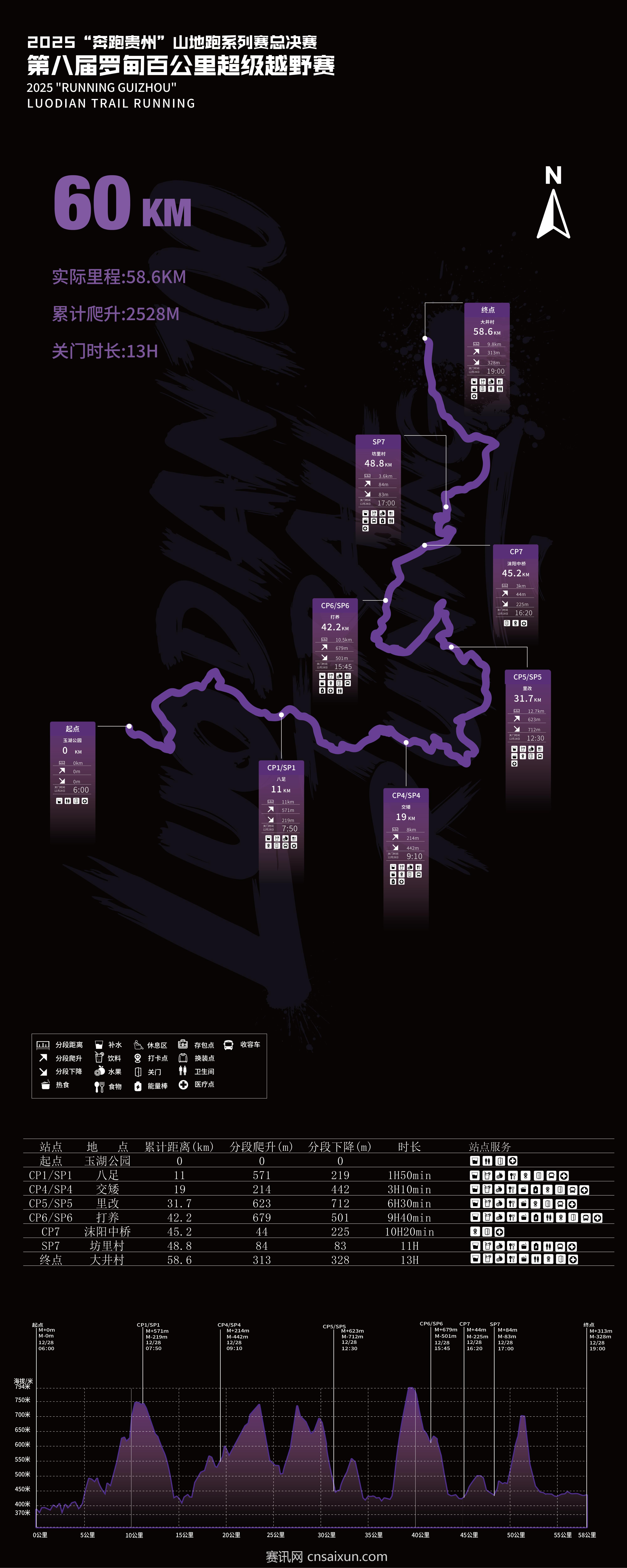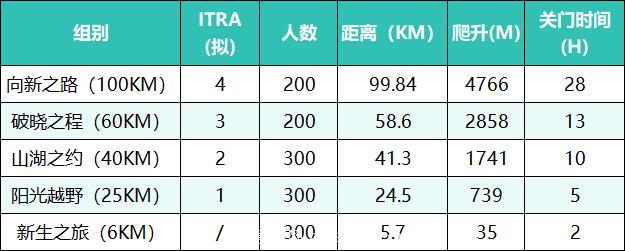 注:如因天气原因、地质灾害等其他因素,组委会拥有未经通知更改赛道线路、救援点位置及补给站设置的权利。因政府要求或在极端天气条件(大雨、大雾、冻雨、大风等)、地质灾害等其他因素下,赛事组委会有权推迟、熔断甚至取消赛事,如因不可抗力原因导致的相关改动不做任何经济补偿。